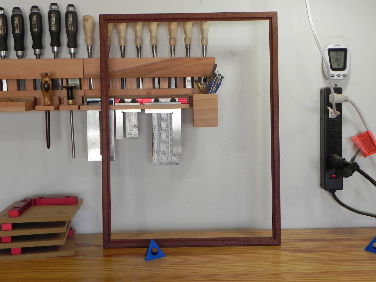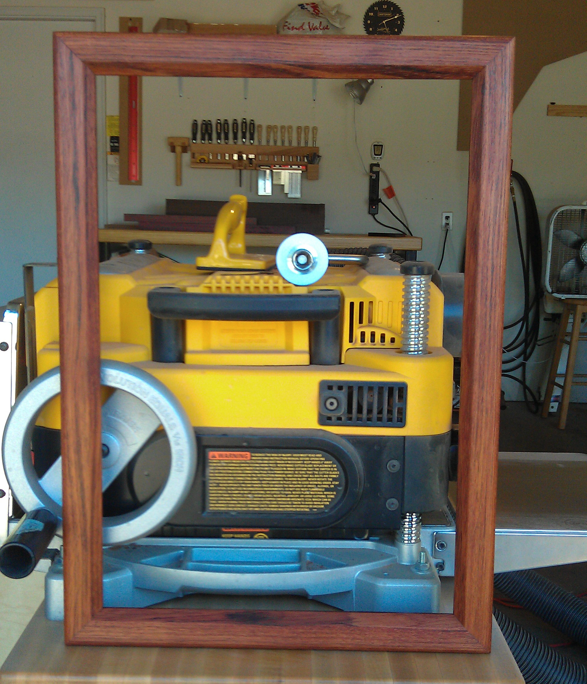 I don’t have much to say in this post, but I do have a lot to show. Last time I showed the jigs I use to make picture frames, This times I have some frames to show. Over the last couple of weeks, I have made the two frames pictured below, They where both made using simple router bits, and wood left over from other projects. The first one is made from Honduran Mahogany, with miters reinforced with Mahogany keys. The second frame is made of Jatoba, one of my favorite woods. It’s miters are reinforced with Jatoba keys.